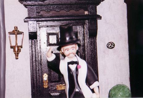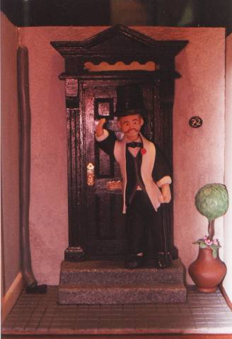 nummerplaatje, de regenpijp en de plant zijn gemaakt van fimoklei.